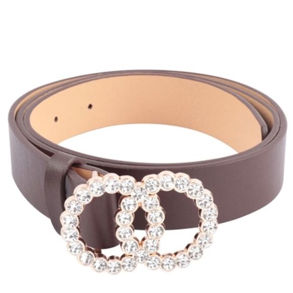 Accessories New Dark Brown Double Circle Gold Toned Bling Belt Os