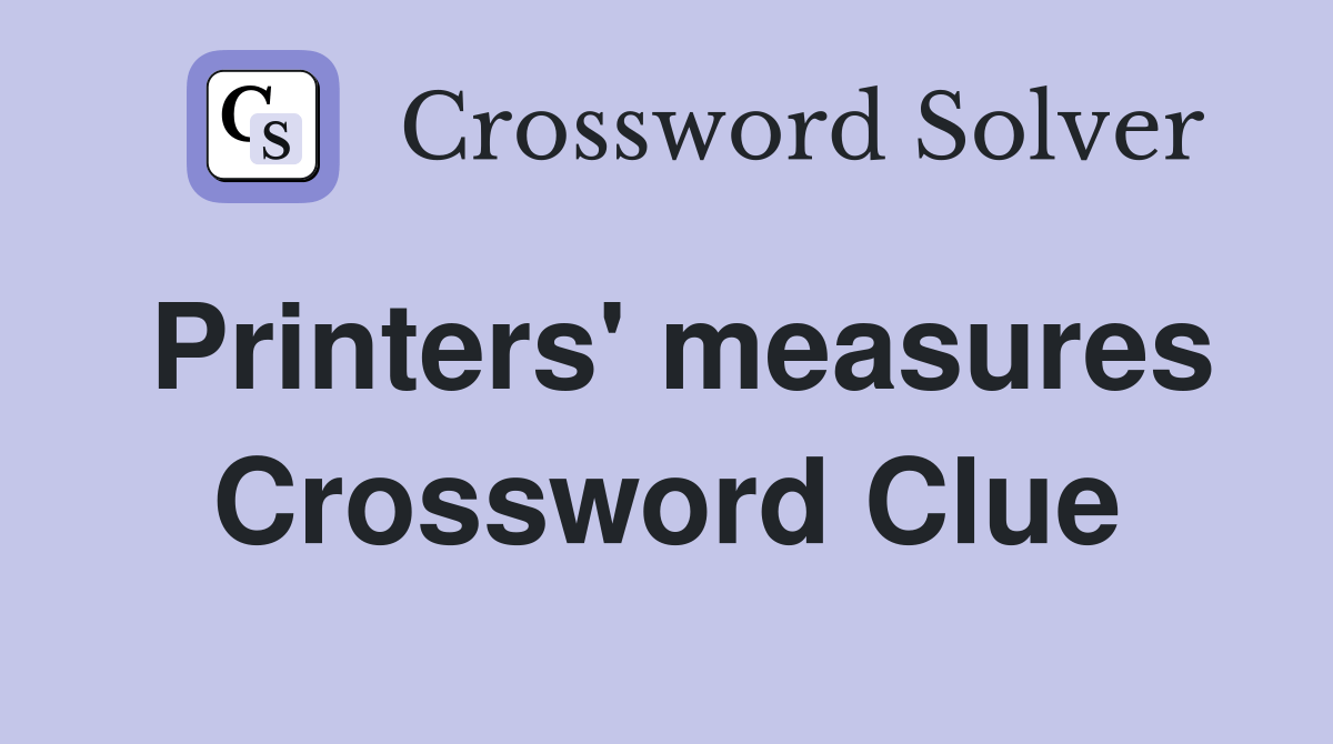 There are related clues (shown below). We have found 40 possible answers for this clue in our database. Printers' measures is a crossword puzzle clue that we have spotted over 20 times. The crossword solver finds answers to classic. If this solution does not solve the clue or if there is another solution. Here is the answer for the crossword clue printer's measurement (2). The crossword solver found 30 answers to printer's measure, 3 letters crossword clue. Here is the answer for the crossword clue printer's measures last seen in wall street journal puzzle. Here is the answer for the crossword clue printer's measure last seen in wall street journal puzzle. Printer's measure is a crossword puzzle clue that we have spotted over 20 times.