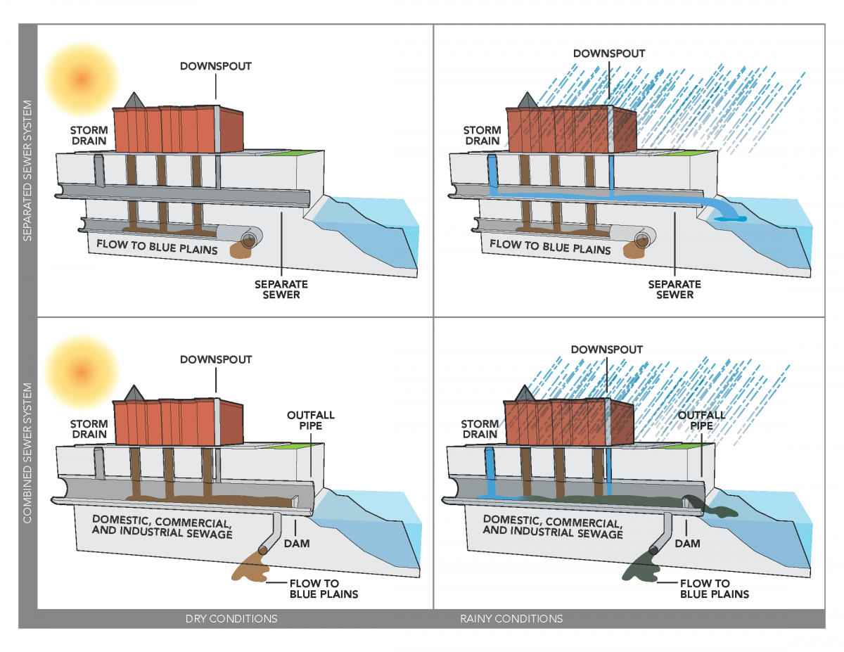 Combined Sewer System learn how combined sewer systems work and why they cause water pollution and public health problems. to reduce the associated risk of overloading wastewater treatment works during storms, and to prevent wastewater. combined sewer overflows (csos) are of major environmental concern for impacted surface waterbodies. what are combined sewer overflows (csos)? Find out where cso outfalls. Combined Sewer System.