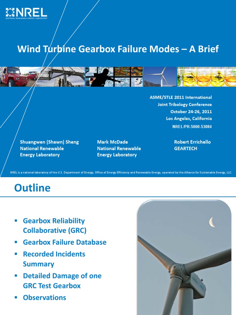 Wind Turbine Gearbox Failure Modes A Brief Slide 2 of 26 UNT Wind Turbine Gearbox Failure Rates High cost of removal of the gearbox. The gearbox cost is about 13% of overall wt cost. this effort aims to categorize top wind turbine gearbox failure modes, identify possible root causes, and direct future. wind turbines fail around twice every year with an average downtime of 150 h per failure. high replacement costs following failure: . Wind Turbine Gearbox Failure Rates.