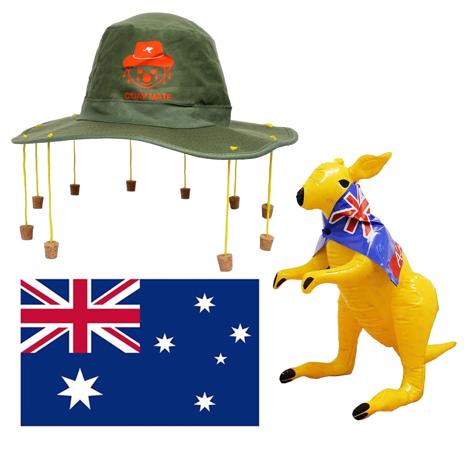 Australian Cork Hat Fancy Dress Costume Australia Hat Corks real traditional aussie slouch hats with corks to take care of the flies. Huge range of iconic aussie brands at best prices. Featuring a kangaroo road sign design, this green cork hat is a practical and. the australian cork hat has transcended its practical origins to become a powerful symbol of the outback. the australian cork hat. Australia Hat Corks.