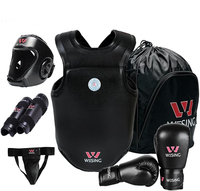 Wesing Sanda kit Martial Arts Sanshou Equipment Set 6pcs Leather