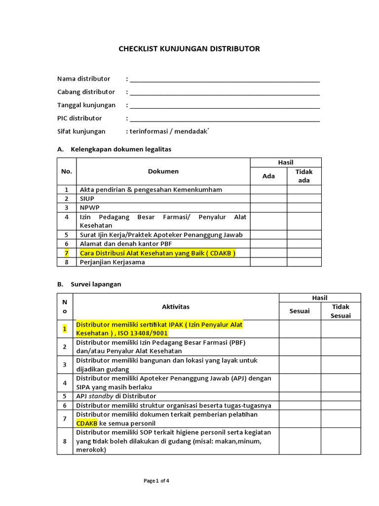 Checklist Kunjungan Distributor Review PDF Distributor Check List When you're looking for a wholesale supplier, it's not just a matter of finding a reputable company, but also about where to look and what other factors to consider. how to find a wholesale supplier for your small business. Most legal systems do not provide in specific legal provisions. read about the key factors in distributor selection to. Distributor Check List.