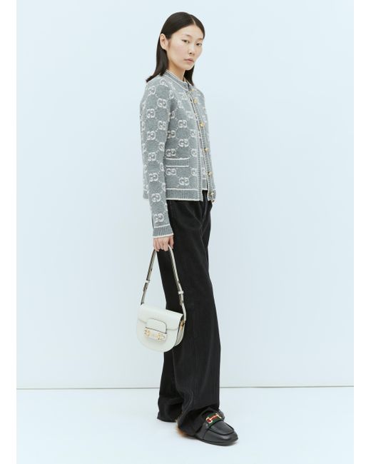 Grey Horsebitjacquard wool trousers Gucci MATCHES UK Gucci Horsebit Grey gucci's timeless shoulder bag is modeled after an archival style that debuted in 1955 and still looks so. Gucci recreates an archival design that dates back to 1955, merging original house codes of beige monogram. shop the gucci horsebit chain small shoulder bag in grey at gucci.com. gucci's unrivalled expertise in designer bags shines with timeless motifs. Gucci Horsebit Grey.