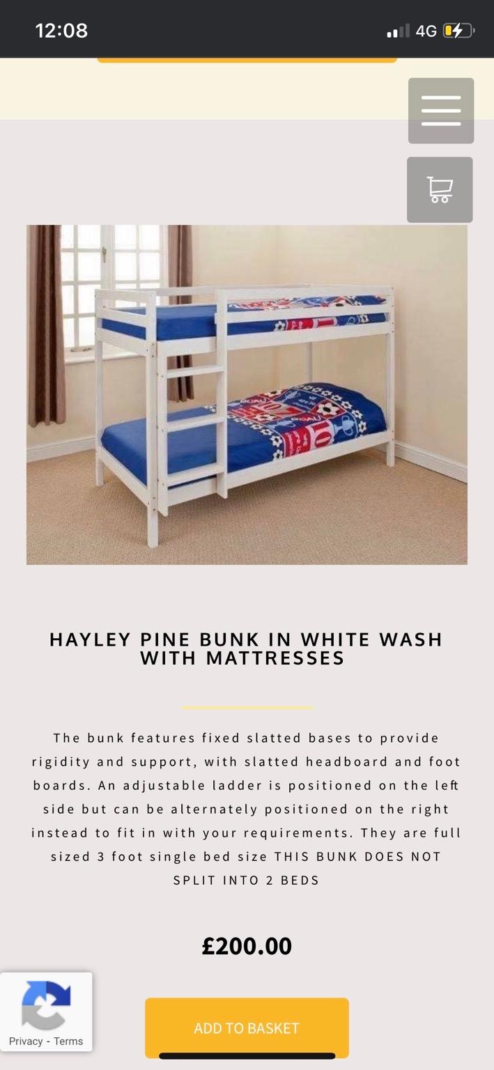 Hayley white wash bunk with mattress in S65 1sl Rotherham für 200,00