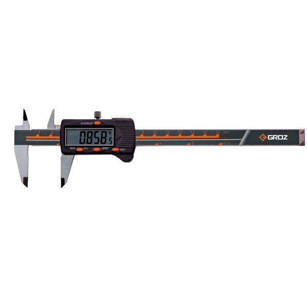 EDC/8 GROZ ELECTRONIC CALIPER, 08/0200MM, 0.0005/0.01MM,4 BUTTONS Groz Digital Vernier Caliper Measures in both inches and millimeters. This rugged caliper is built to withstand dust and water. Electronic digital caliper with dual mode measurement system. Discover precision and durability with our ip67 approved electronic vernier caliper. Groz digital caliper with dual measurement system (inches & mm)| rugged stainless steel body| high contrast lcd display| locking screw| transfer data to pc/laptop| range:. Groz Digital Vernier Caliper.