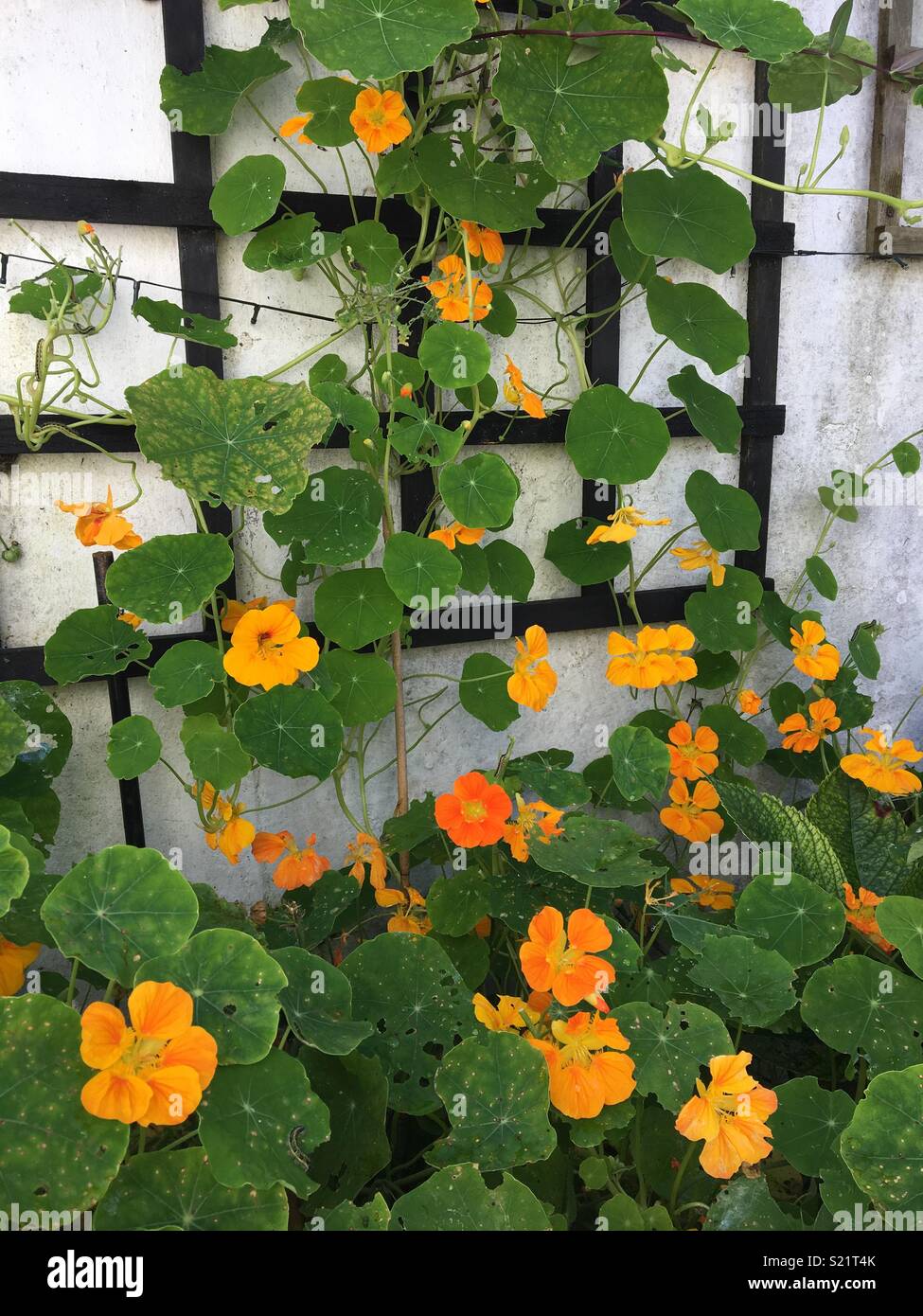 Nasturtium climbing a wall Stock Photo Alamy