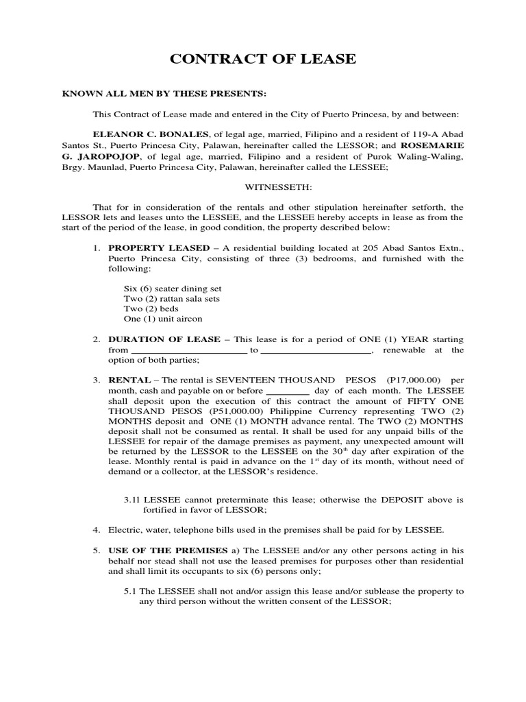 Contract of Lease House PDF Lease Real Property Law