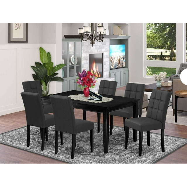 East West Furniture 7 Piece Logan Modern Dining Table Set Black East West Furniture 7-Piece Dining Set This kitchen table set delivers 6 fabulous wooden dining chairs and a wonderful dinner. Magnificent dining set for your outstanding dining area. The dining set boasts a linen white color that comes across as an effective additional color to your dining space given its attractive color on. It contains a dining table and 6. East West Furniture 7-Piece Dining Set.