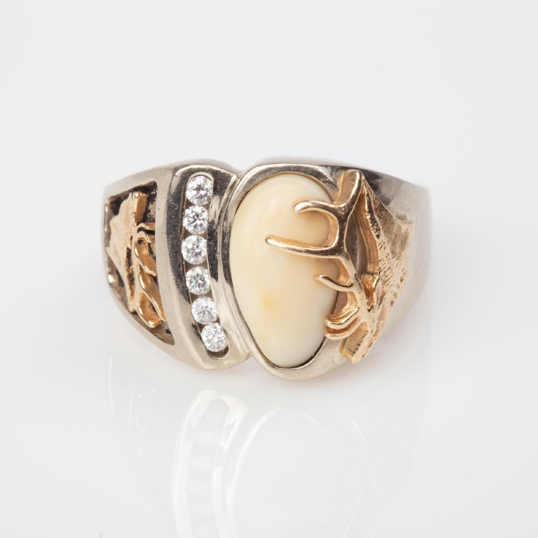 14K MENS ELK TOOTH DIAMOND RING