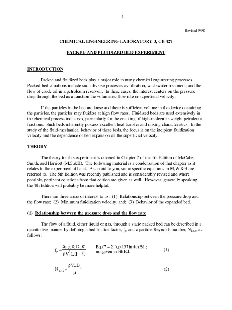 Fixid AND Fluidized BEDS CHEMICAL ENGINEERING LABORATORY REPORT CHE Fluidized Bed Experiment Report (1) the superficial velocity (vs) was close to the minimum fluidization velocity (vf) for small grain sand but not large grain sand; This allows for extensive mixing in all directions, a result of the mixing is excellent. It aims to determine pressure drops, observe onset of fluidization, and compare characteristics between particle sizes and mediums. Students will collect data on. Fluidized Bed Experiment Report.