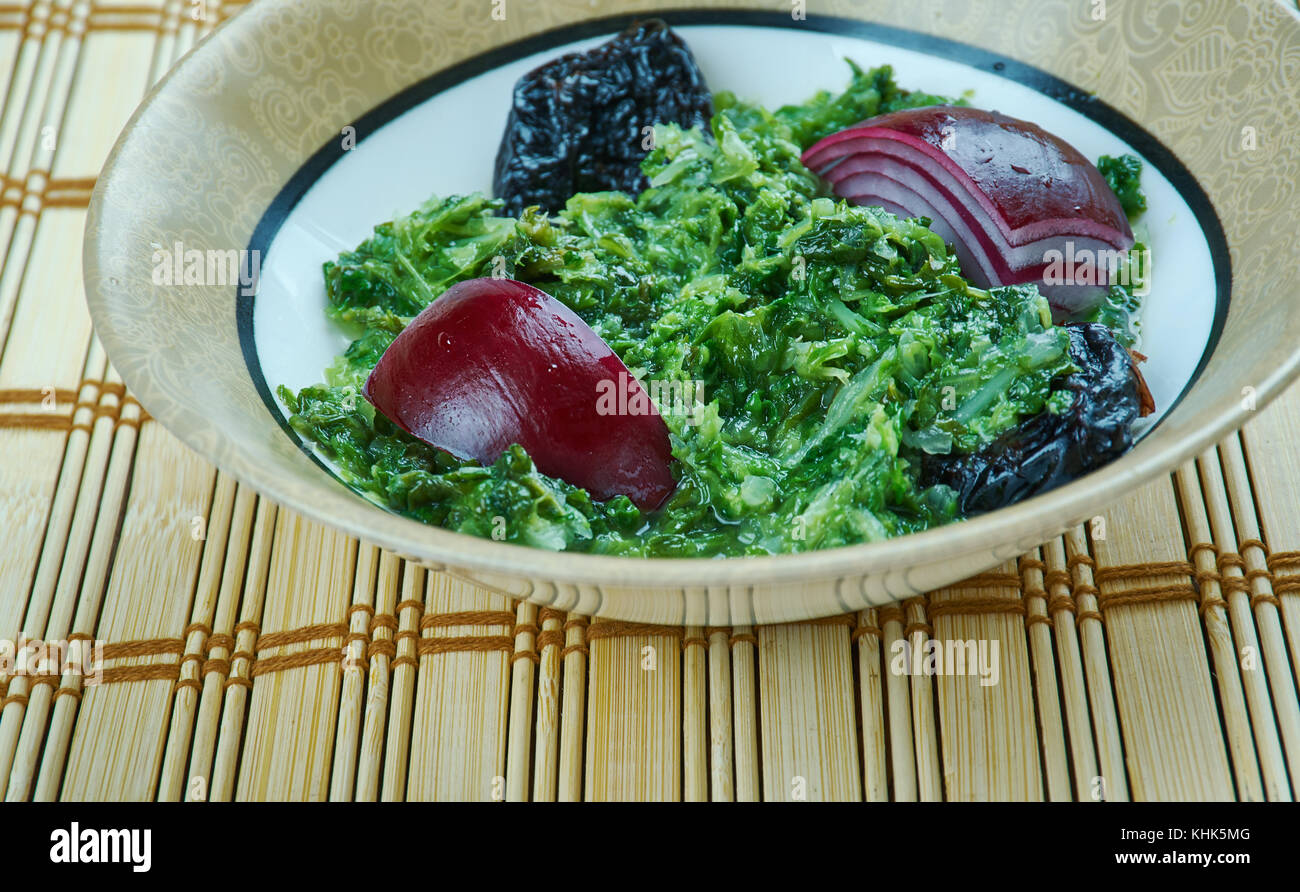 Khoresh Aloo Esfenaj Persian Spinach Stew, Iranian cuisine Stock