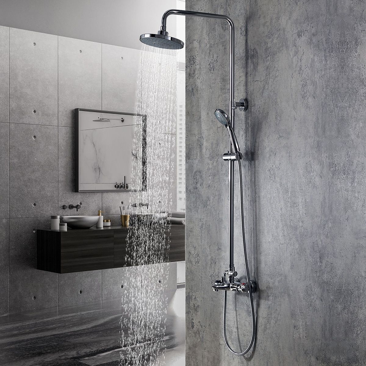 Chrome Shower System Elevate your bathroom with our superior chrome shower systems, offering beauty, functionality, and easy maintenance. Rain shower head and hand shower; Ideal for traditional and contemporary. Modern design, thermostatic control & easy installation. View our extensive collection of chrome shower systems. Discover the perfect balance of elegance and functionality with a chrome shower system. With single, dual and triple mixer. Chrome Shower System.