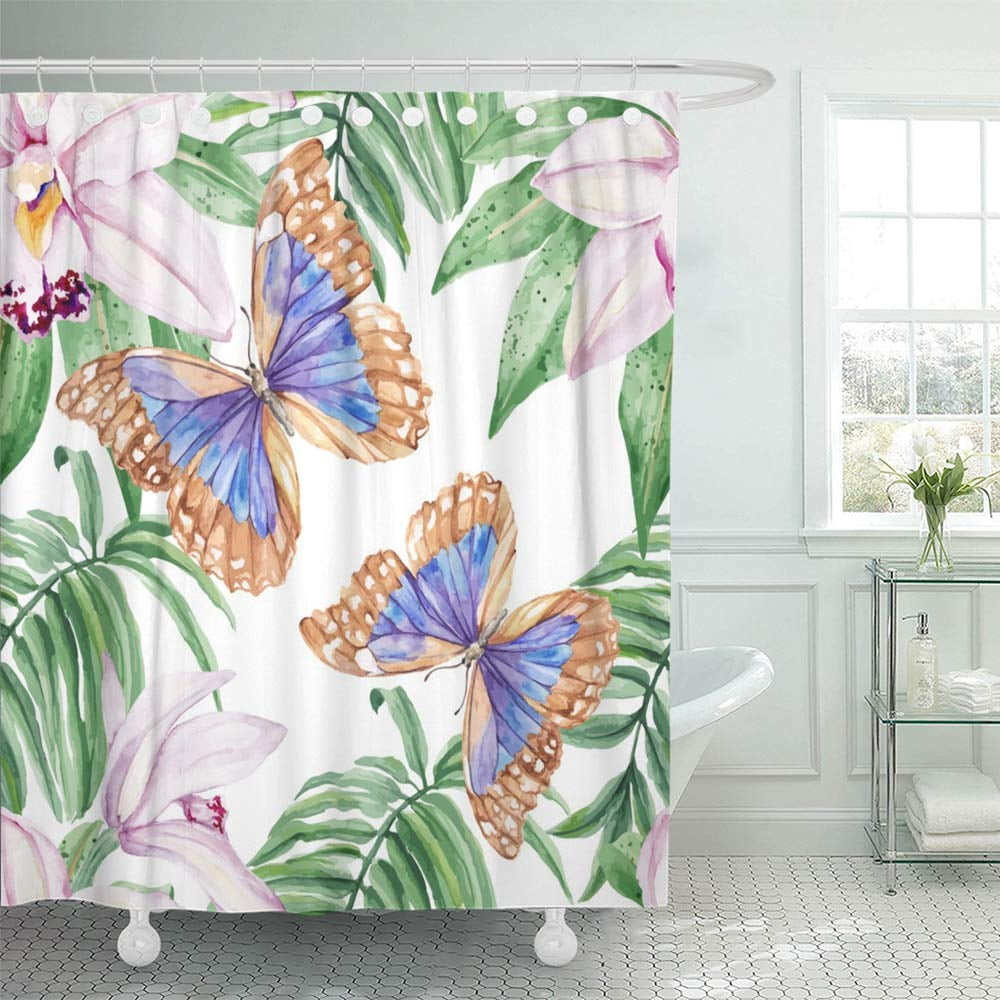 KSADK Blue Butterfly Tropical Butterflies and Orchids Hand Watercolor Butterfly Shower Curtains At Walmart buy butterfly script fabric shower curtain from walmart canada. 1m+ visitors in the past month • butterflies bring a sense of calm and relaxation into your bath area on this shower curtain • buttonholes at top make it easy. framics 16 pc sunflower butterfly shower curtain and rug sets, flower quotes bathroom sets, black waterproof fabric. . Butterfly Shower Curtains At Walmart.