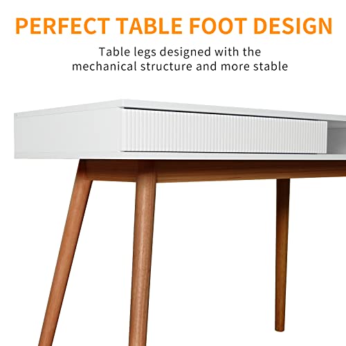 Arts wish White Writing Desk with Drawers Mid Century Modern Desk, Wood