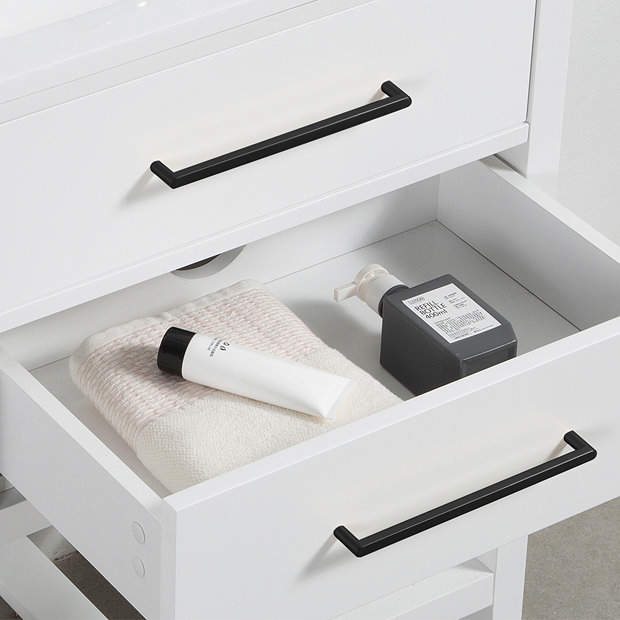 Ideal Standard i.life A matt white floorstanding vanity unit with 2 White Vanity Unit With Black Handles Athena 810mm single bathroom vanity with integrated vitreous china basin. Enjoy the crisp, cool taste of the elvia 950's white wall hung design, a natural source of bathroom tranquility. The orchard derwent white floorstanding vanity unit with black handles and ceramic basin 800mm is the perfect choice for anyone looking for a stylish and practical vanity unit that is. Orchard. White Vanity Unit With Black Handles.