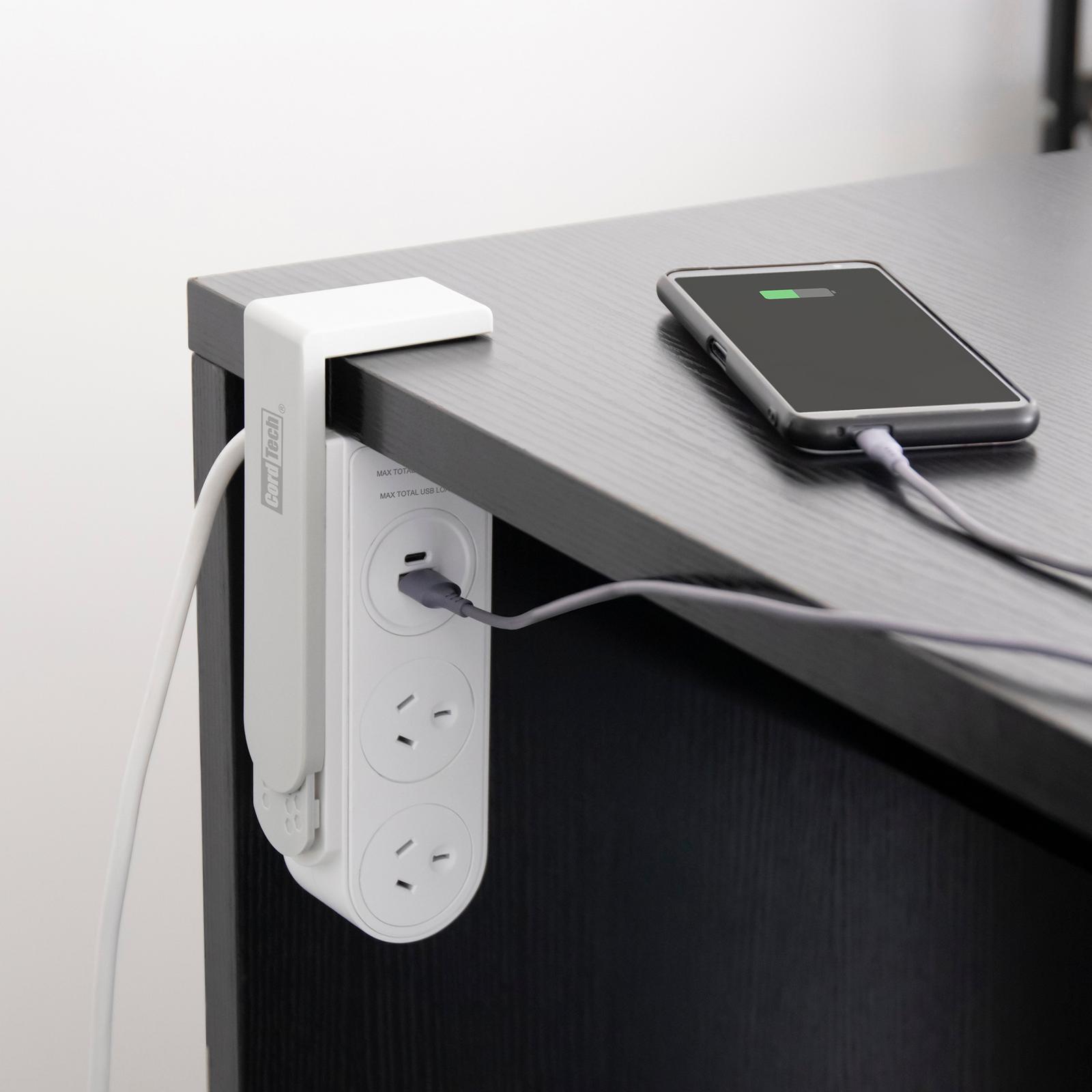 CordTech 2 Outlet Power Board w/ Desk Clamp & USB (A+C) Bunnings
