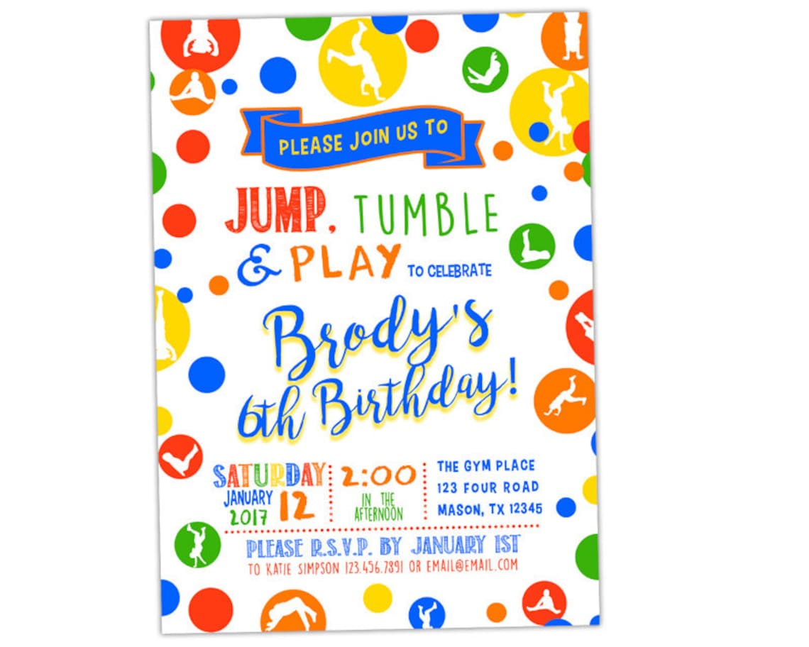 Jump Tumble Play Birthday Invitations Gym Birthday Etsy
