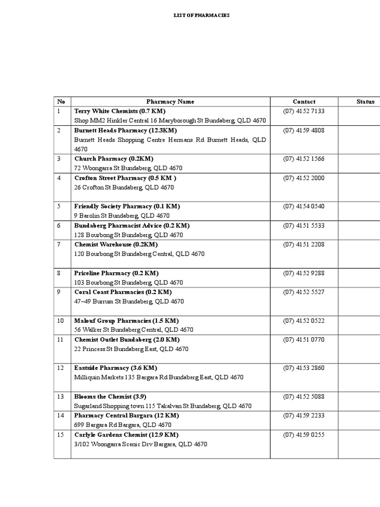 List Of Pharmacies