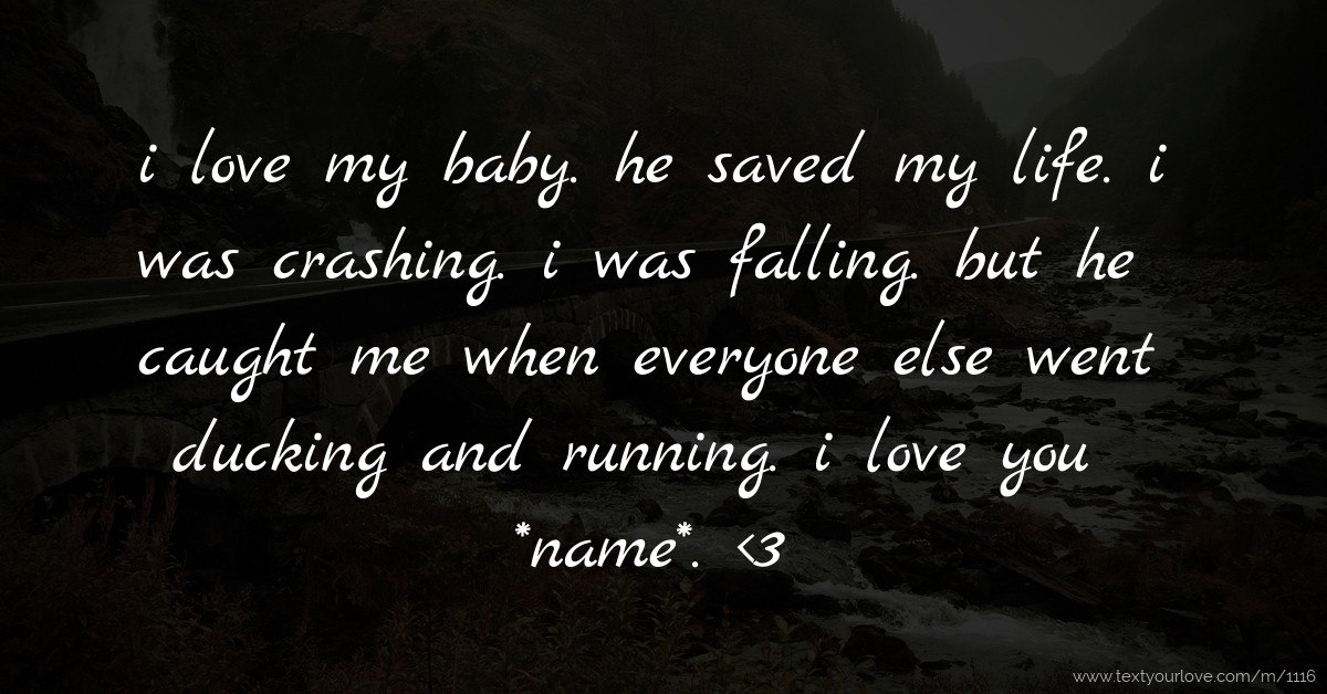 i love my baby. he saved my life. i was crashing. i was... Text
