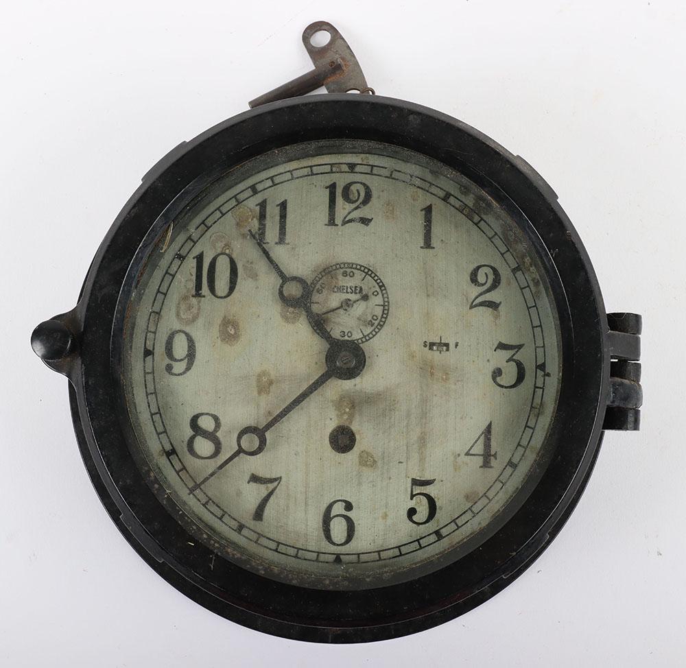 VINTAGE CHELSEA U.S. NAVY SHIP'S CLOCK 1940 1944 Approx 75 years old Us Navy Ships Clock Their nautical clocks first appeared in the 1860’s and. It's in great shape, but the glass was broken when i got it and i have since removed it so as. our clocks have even been featured as a mainstay on u.s. The remnant of a handwritten label is on the back with crew galley. chelsea clock has a. Us Navy Ships Clock.