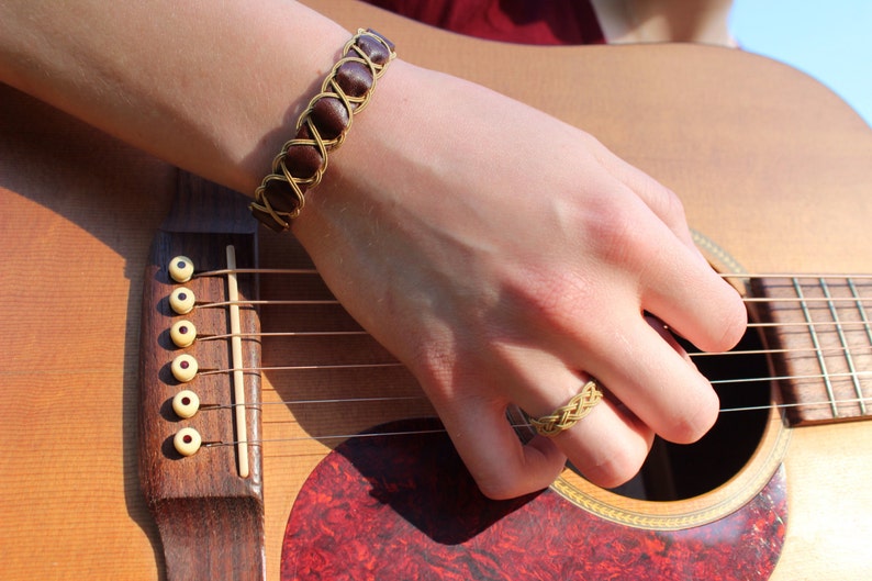 Guitar String Bangle Bracelet with Phosphorous bronze strings and Guitar Strings Jewelry Check out our guitar string jewelry selection for the very best in unique or custom, handmade pieces from our bangles shops. Discover our unique collection of rings, bracelets, and necklaces, handcrafted from upcycled guitar, piano, and violin string with precious metals. Get a custom keepsake or memorial creation made from the strings (or musical instrument pieces) which were previously touched,. Guitar Strings Jewelry.