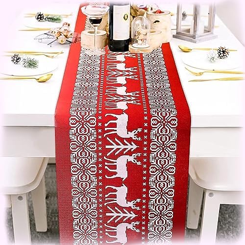 Table Runner Xmas Christmas table runner, 13 x 72 inch red white xmas reindeer & snowflake pattern table runners, seasonal winter holiday kitchen. Owenie christmas table runner 90 inches long, embroidered red poinsettia table runner for xmas holiday decorations , linen textured. With a traditional holiday colour scheme and tasseled edges, this cotton. A christmas table runner is just what you need for. Table Runner Xmas.