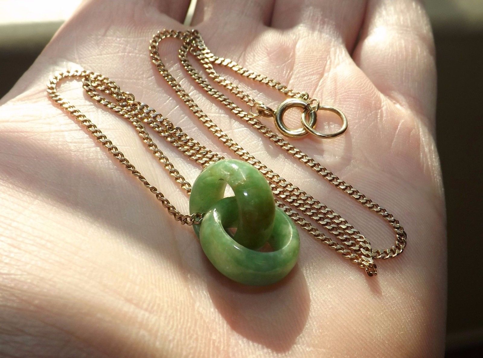 Vintage JADEITE Interlocked Sliding Wheel Pendant & 1/20 14K GOLD 18