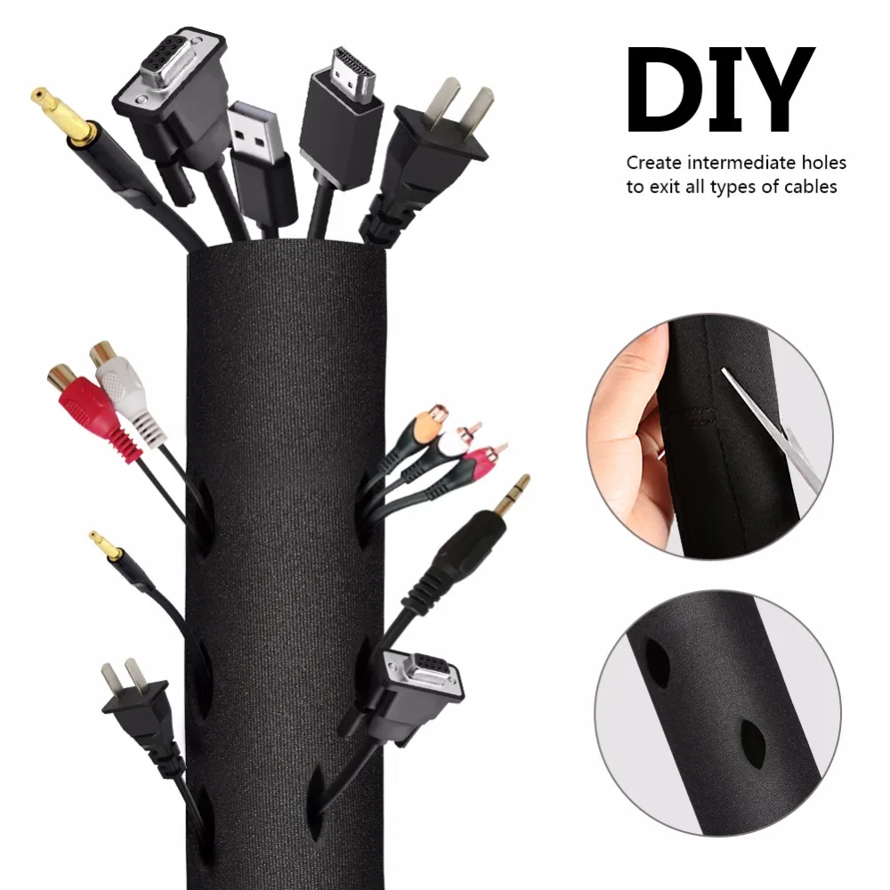 Flexible Spiral Tube Wrap Cable Management Sleeve 14mmx17mm Computer Flexible Cable Management Sleeve Cable sleeving is one of the best looking and most diverse wire management solutions available. Joto 130 cable management sleeve, cuttable neoprene cord management organizer system, flexible cable wrap cover wire hider for. Scissor cut to required length, then wrap by hand popular cable management solution for shorter lengths of cable. Great to organize entry/exit cords coming from d. 4.1. Flexible Cable Management Sleeve.