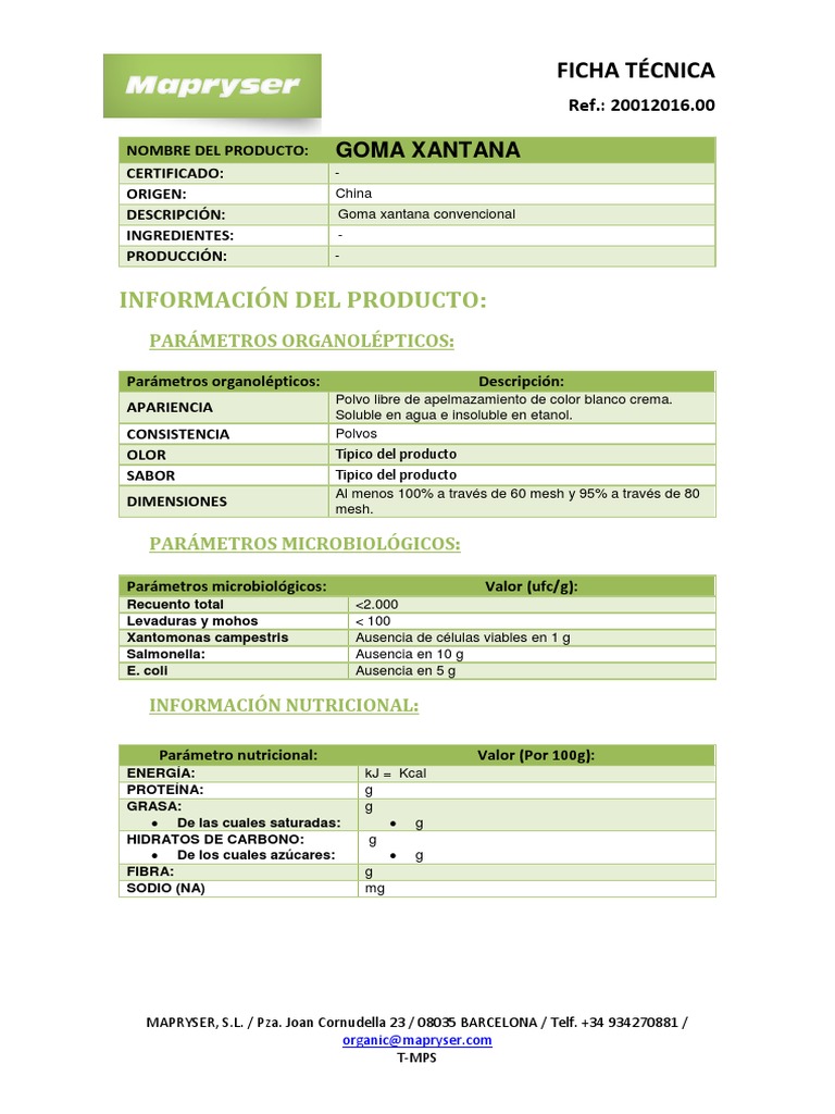 Ficha Tecnica Goma Xantana PDF Comida y bebida Nutrición