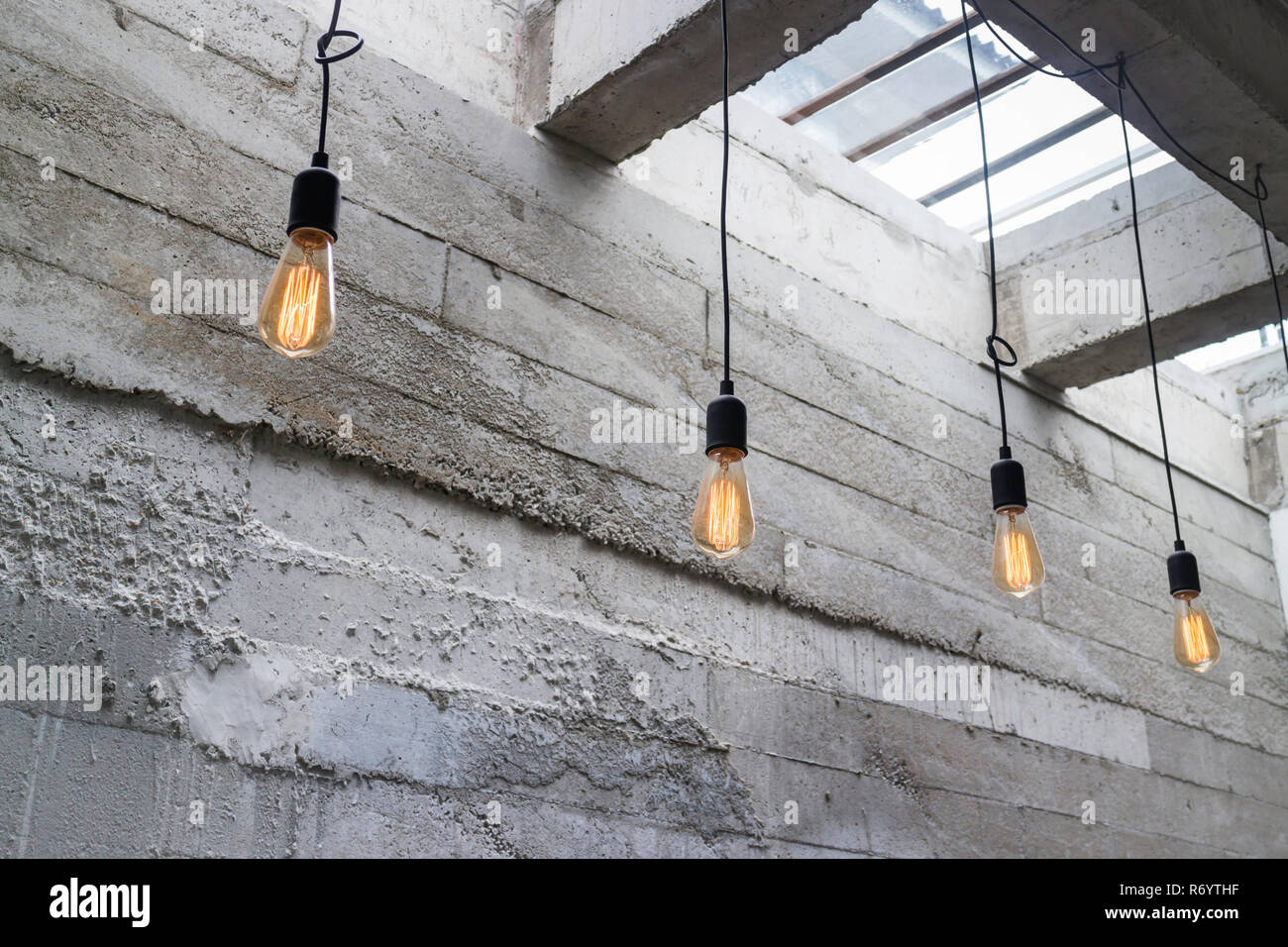 Light bulbs hanging from ceiling Stock Photo Alamy