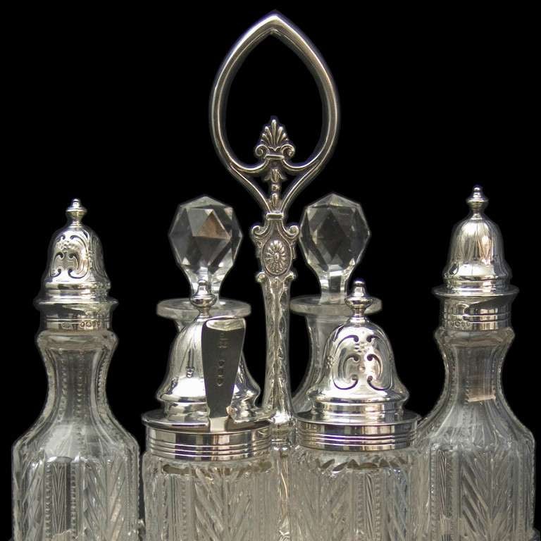 Antique English Silver Six Bottle Cruet Stand at 1stdibs