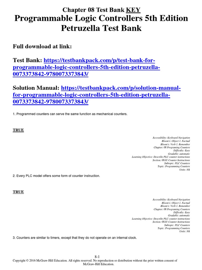Programmable Logic Controllers 5th Edition Petruzella Test Bank