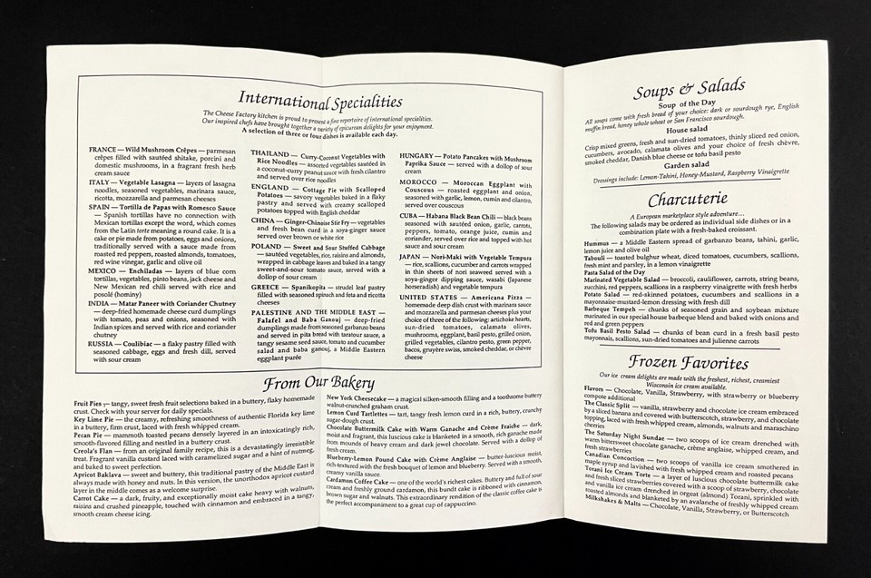 1990s Cheesecake Factory International Menu Wisconsin Dells VTG Travel