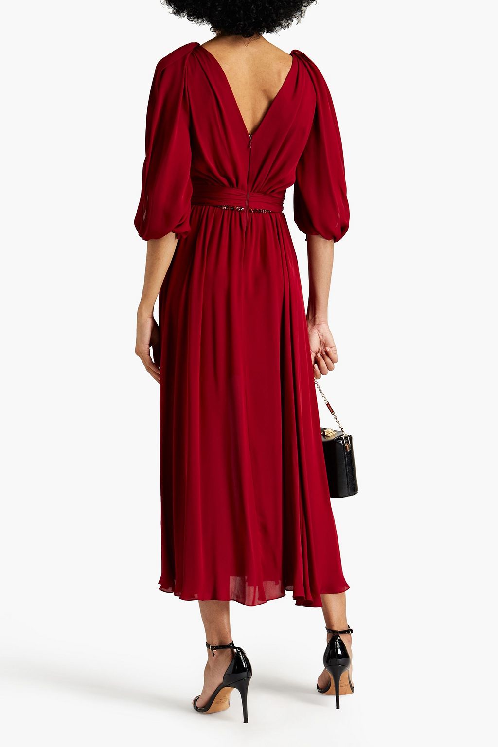 JENNY PACKHAM Crystalembellished pleated silkchiffon midi dress THE