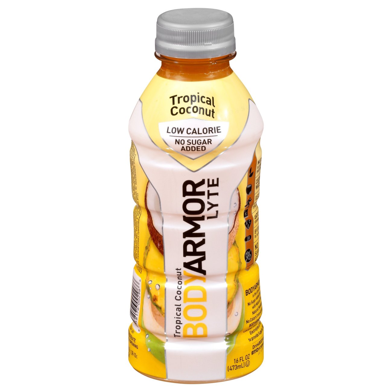 BODYARMOR Lyte Tropical Coconut Sports Drink, 16 fl oz Bottle Body Armor Lyte Coconut The bodyarmor lyte coconut flavored sports drink is low calorie and has no sugar added. From myself who exercises regularly to my mom who is fighting cancer at 81 years of age we drink it daily. Bodyarmor lyte is the low calorie, no sugar added sports drink with natural flavors, natural sweeteners and no colors from artificial sources. Body armor. Body Armor Lyte Coconut.