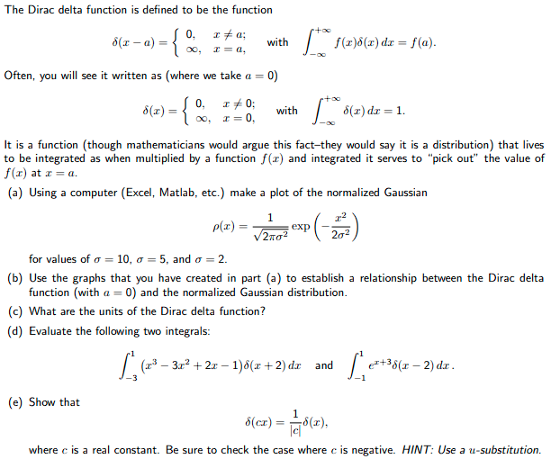 Solved The Dirac delta function is defined to be the