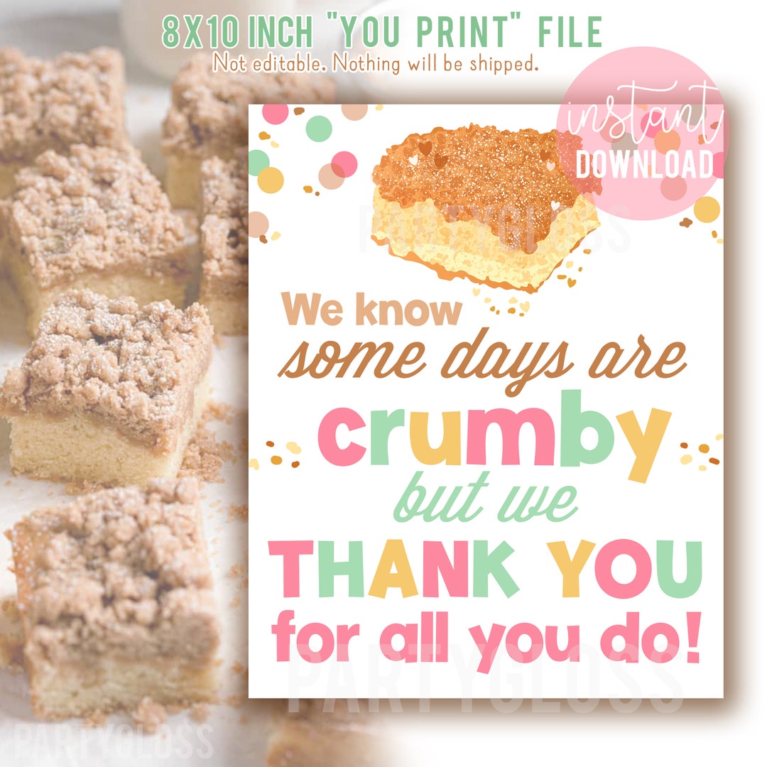 Cake Appreciation 8x10 Printable Sign, Crumb Cake Teacher Appreciation