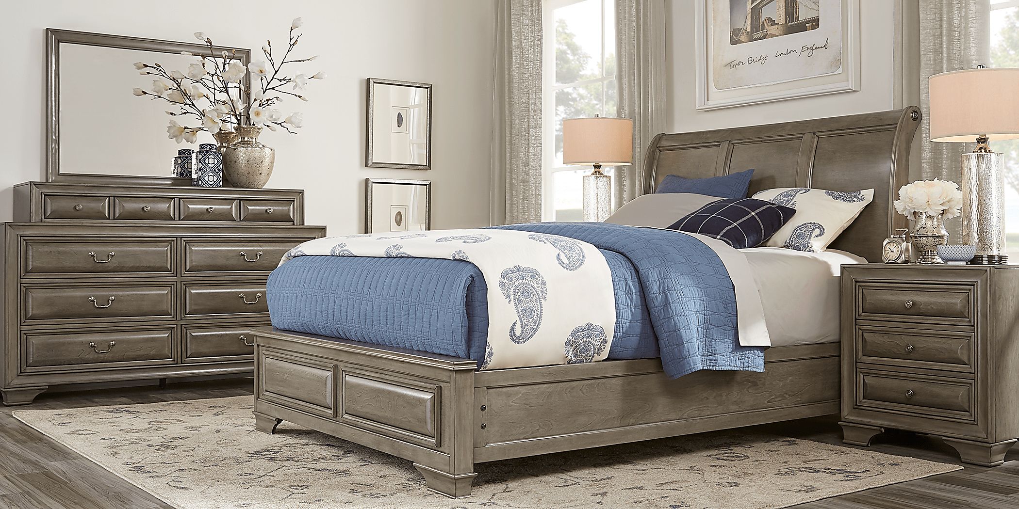 Mill Valley II Gray 7 Pc King Sleigh Bedroom Rooms To Go