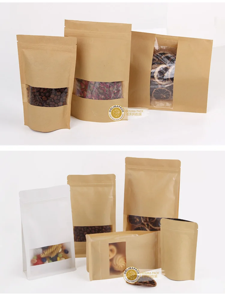 Eco Friendly Doy Pack Kraft Paper Bags With Window Cookies Paper Bag