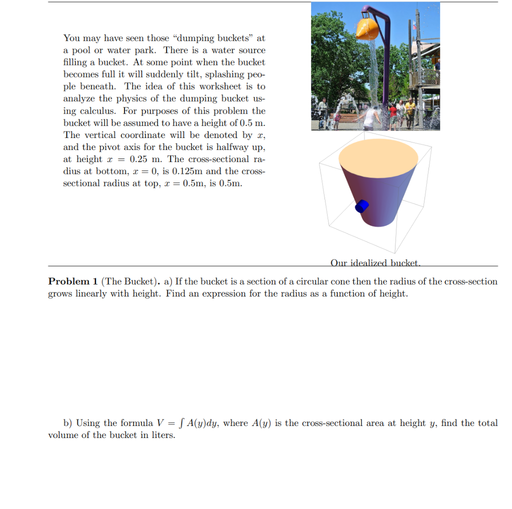 Solved You may have seen those "dumping buckets" at a pool Bucket Area Formula From this video you will understand how to find total surface area and volume of bucket.more. surface area and volume | how to calculate the volume of bucket. The curved surface area of a frustum of any shape can be calculated by using its height 'h' and its base. find the area of the base, times 2, then. Bucket Area Formula.