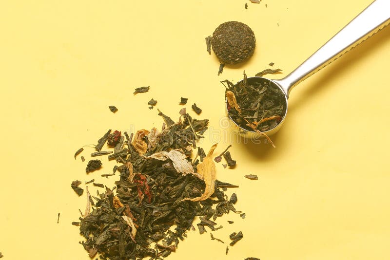 Green Tea Leaves on Yellow Background Stock Photo Image of spoon Yellow Green Tea Leaves — recently consumer preference has favored teas with vibrant green leaves and cup color. — huoshan huangya yellow tea leaves yellow tea is the sixth, and the least known, type of tea. — uniformity and appearance: It is very similar to green tea, the main difference being a slower drying phase, allowing the leaves to turn yellow. Yellow Green Tea Leaves.