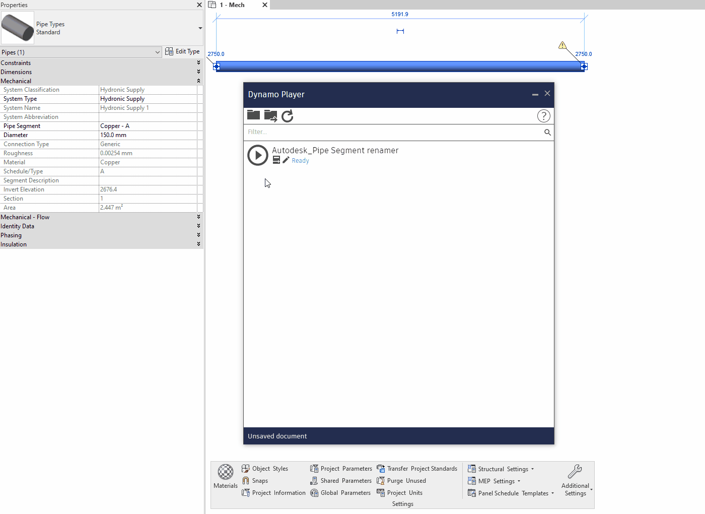 Comment renommer un segment de tuyau dans Revit