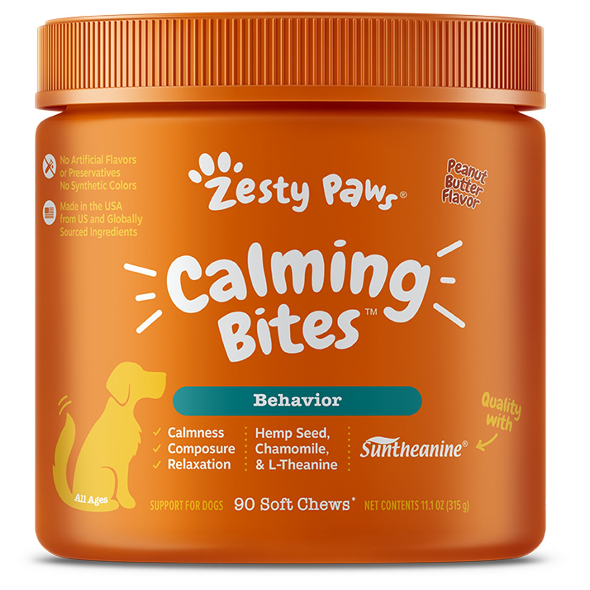 Zesty Paws Calming Bites for Dogs Peanut Butter Flavor 90 Ct