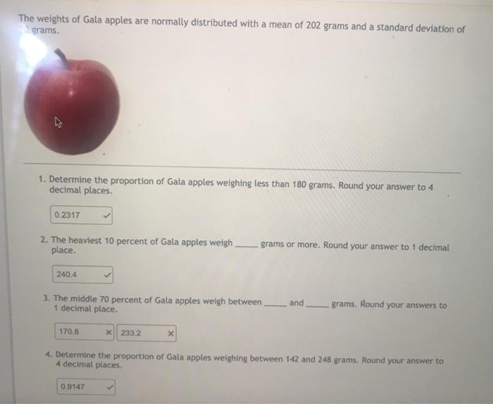 Solved The weights of Gala apples are normally distributed Gala Apple Weight 37 rows gala is an apple cultivar with a sweet, mild flavor, a crisp but not hard texture, and a striped or mottled orange or. These tiny apples usually weigh approximately 35 to 50 grams (1.25 to. Gala must (in italy) gala brookfield. Choose apples that feel heavy for their size. small apples (such as crab apples): This. Gala Apple Weight.