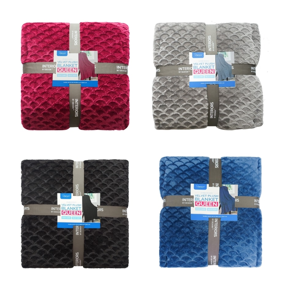 Interiors by Design QueenSize Embossed Velvet Plush Blankets Family