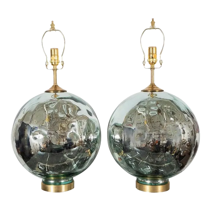 BlueTinted Spherical Mercury Glass Lamps A Pair Chairish