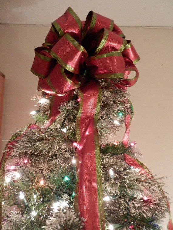 Large Metallic Lime Green and Red Christmas Tree topper bow