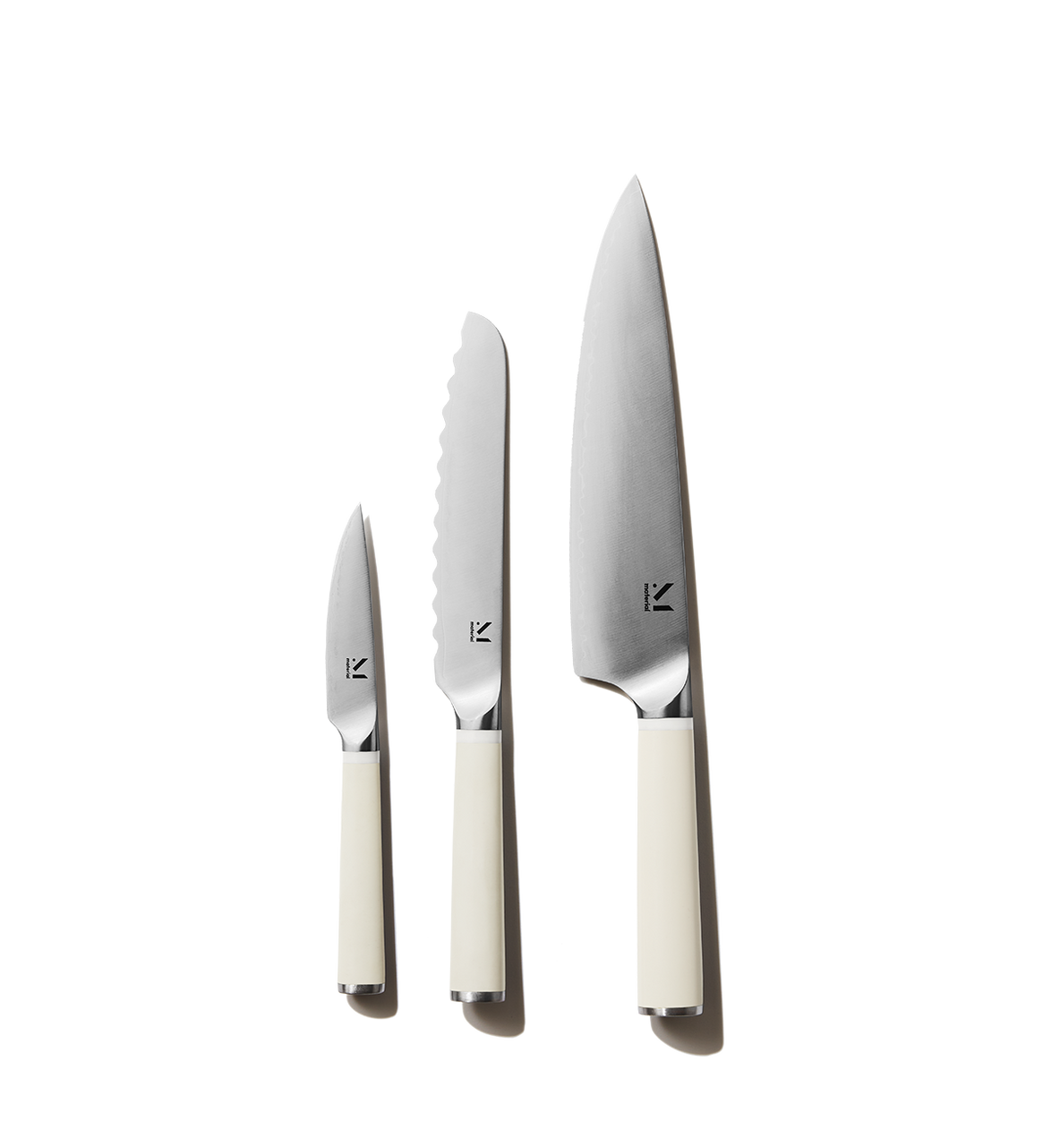 2023 Gift Guide Foodie The Mantra Collective Material Kitchen Trio Of Knives Sure, some foods take a bit more force, but. Our editor found material’s trio of knives to be incredibly effective at cutting literally everything, from fruit to veggies to meat. Each of the three blades is crafted from cryogenically tempered japanese stainless steel and high carbon (aka, they won’t rust or scratch and will maintain a sharp edge. From its. Material Kitchen Trio Of Knives.