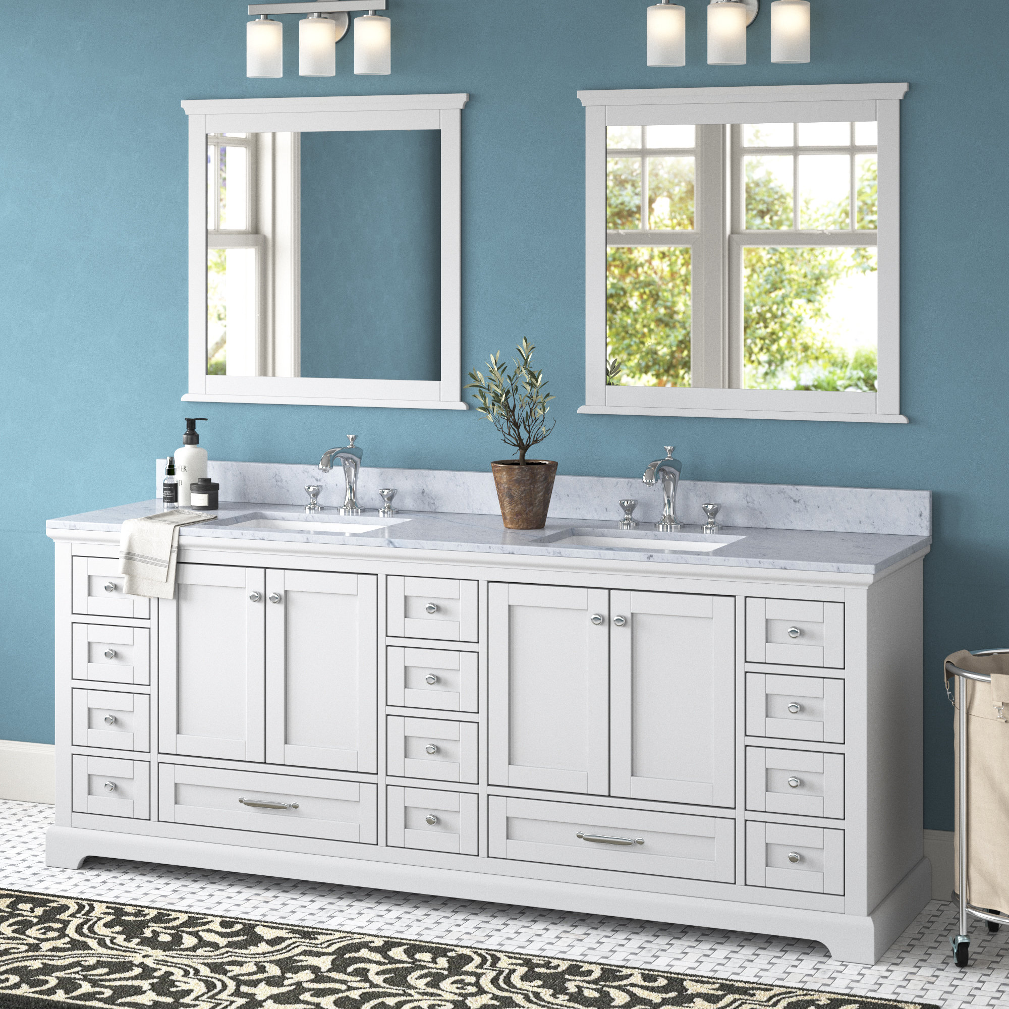 84" Double Bathroom Vanity in Dark Blue, Carrara Cultured Marble Drumgurland 84 Double Bathroom Vanity Set Enjoy free shipping on most stuff, even big stuff. Browse a large selection of bathroom vanities in a wide range of sizes, finishes and styles. Shop wayfair for the best 84 inch double sink vanity drumgurland. Enjoy free shipping on most stuff, even big stuff. Shop wayfair for the best drumgurland vanity 84. Drumgurland 84 Double Bathroom Vanity Set.